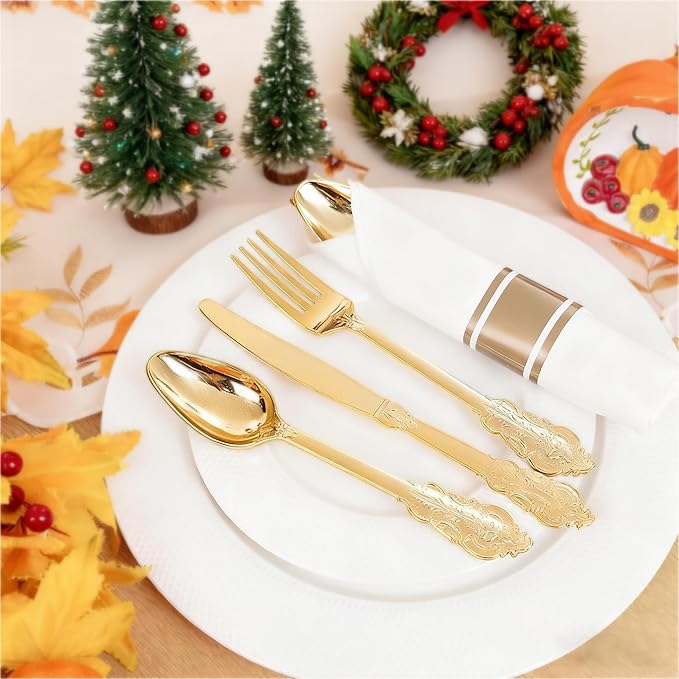 - Convenient Pre-Rolled Design: Our gold pre rolled silverware set disposable save you time in setting the table. You can throw the gold silverware set away after use to reduce the stress of clean up