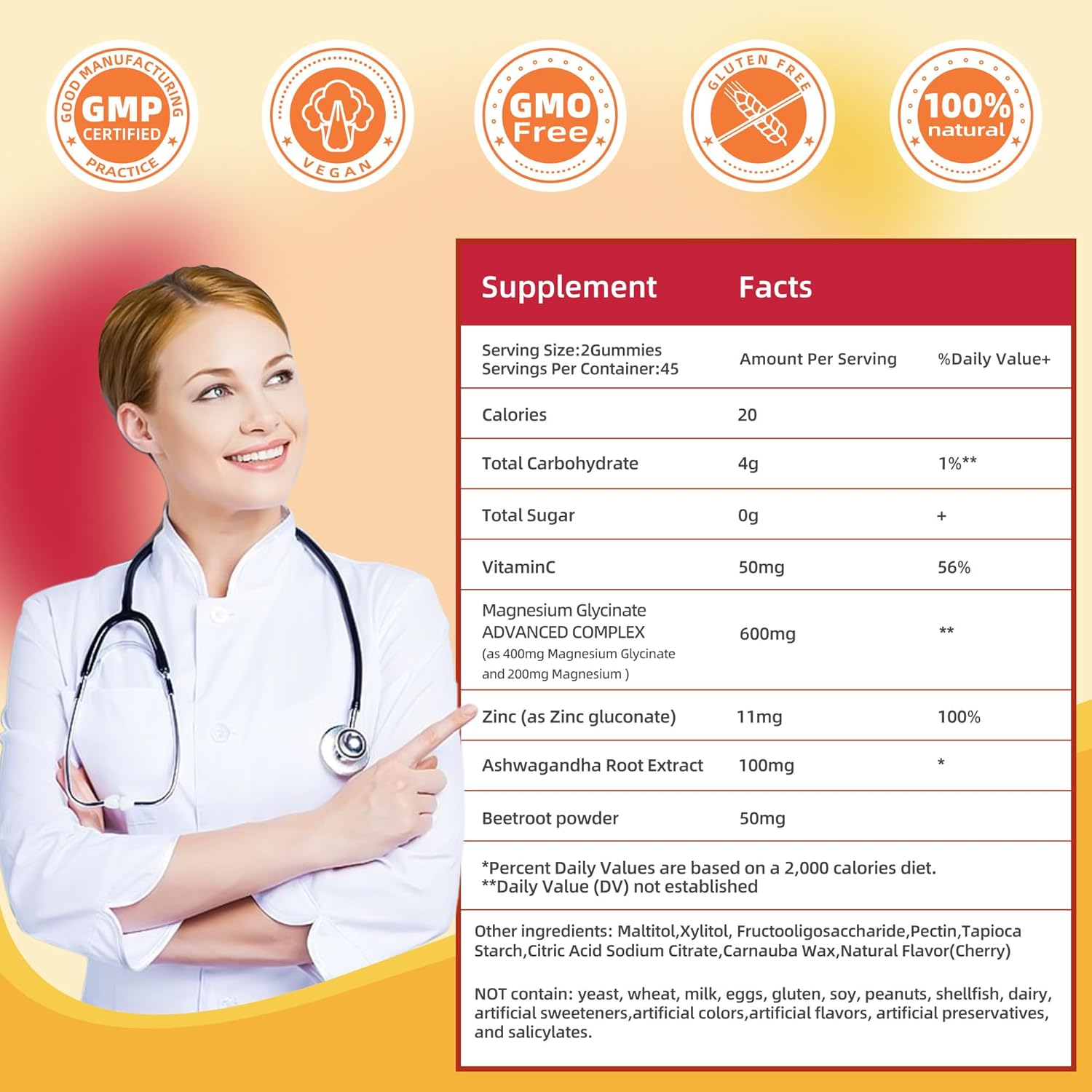 - Indulge in guilt-free pleasure! : We believe in offering you a healthier choice. Our magnesium glycinate gummies are completely sugar-free, gluten-free and vegan-friendly, ensuring you can enjoy their delicious taste without the guilt. Indulge in the natural orange flavor that makes taking your daily supplements a delightful experience while nourishing your body with essential nutrients for optimal relaxation.Taking care of your health should be a delightful experience, not a chore
