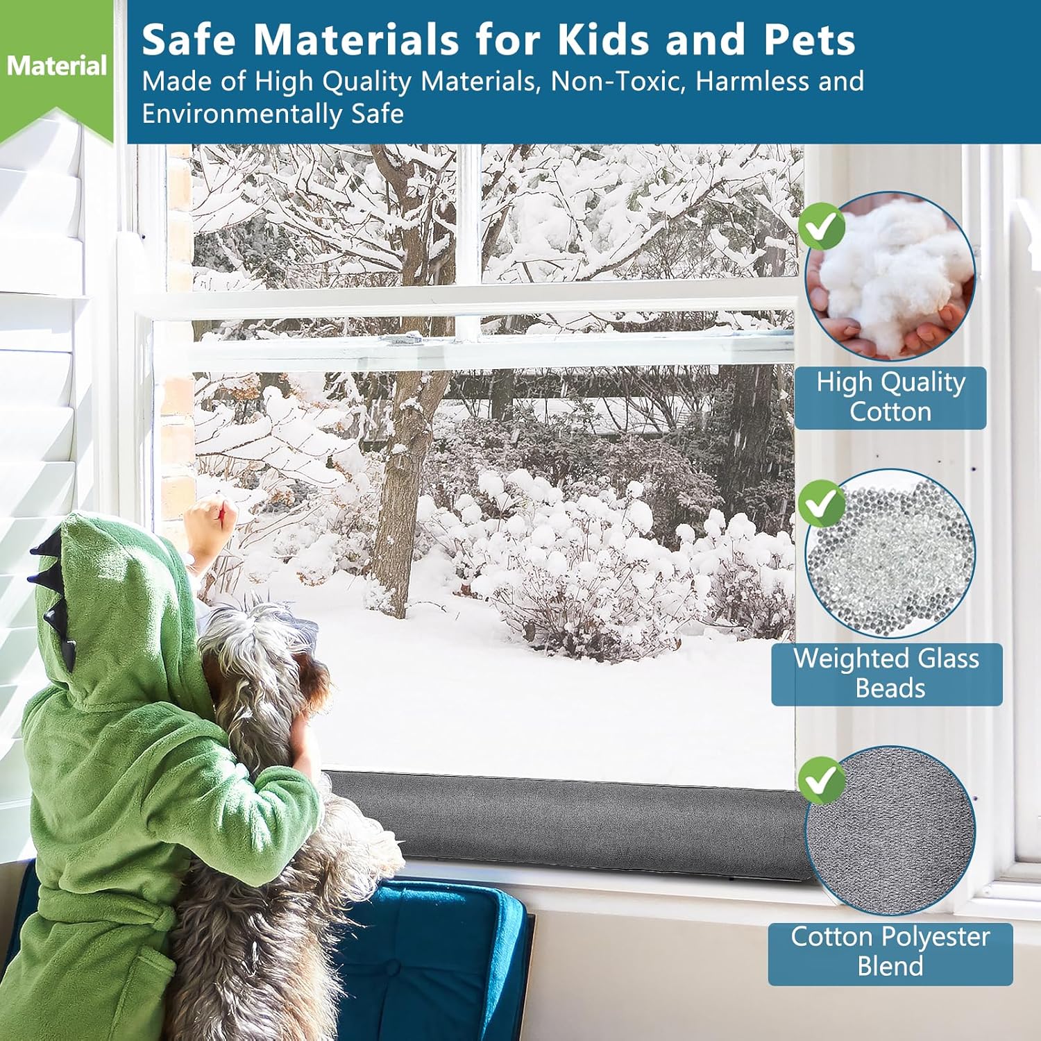 - SAFE AND DURABLE MATERIAL: The door draft stopper is made of cotton polyester blend and especially added glass beads, ensure the door blocker is not easily moved away from your door. And the material of door bottom draft stopper is friendly to kids and pets