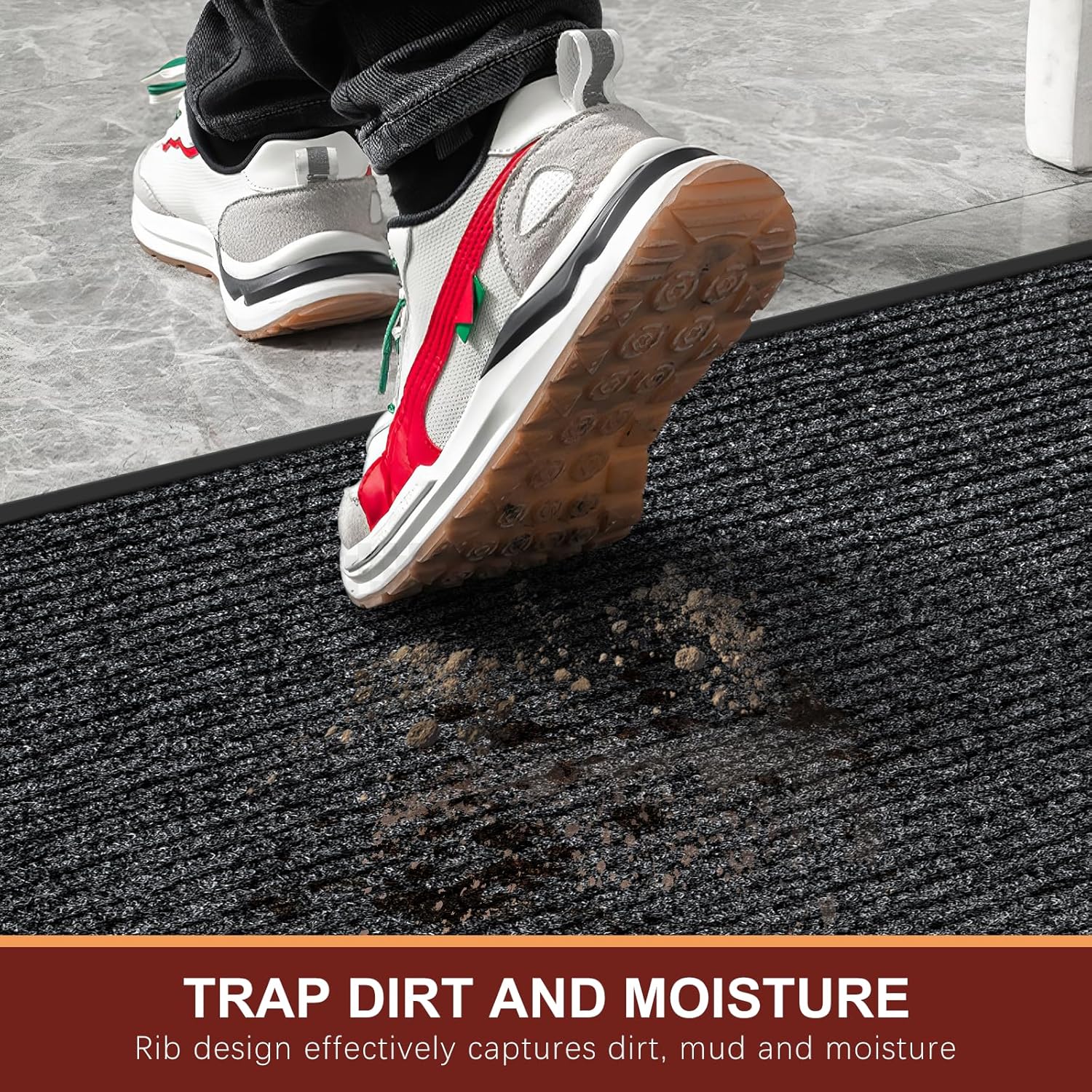 - [Absorbs Dirt an Moisture]:A high-low surface rib design effectively captures dirt, mud and moisture in the the recessed channels below shoe level to keep grime and water outside. Even rainy, snowy or muddy weather, it will keep your home dry and clean.