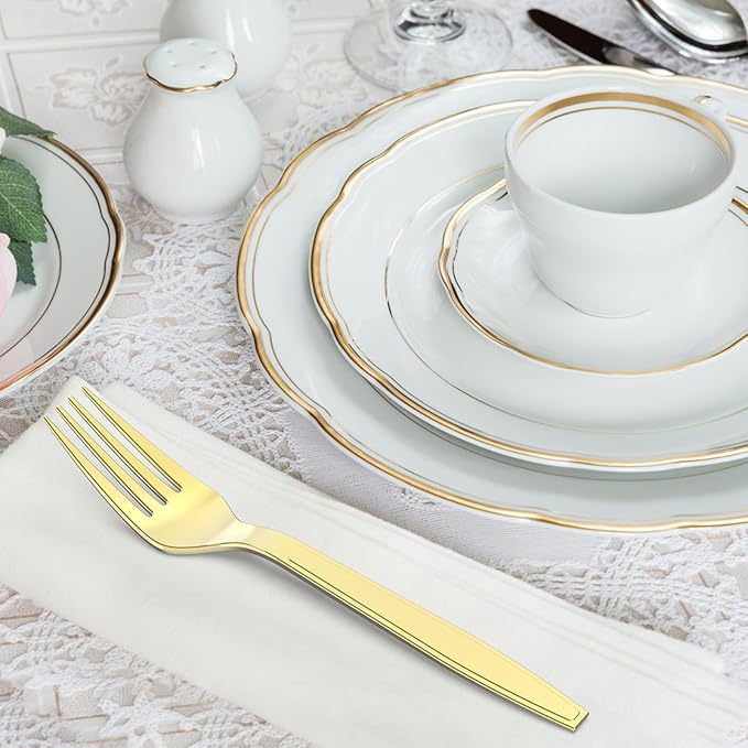 360 Count Extra Heavy Duty Gold Plastic Forks Disposable, BPA-Free, Heat Resistant, Solid and Durable Disposable Forks Bulk, Premium Plastic Forks heavy duty for Party Supply