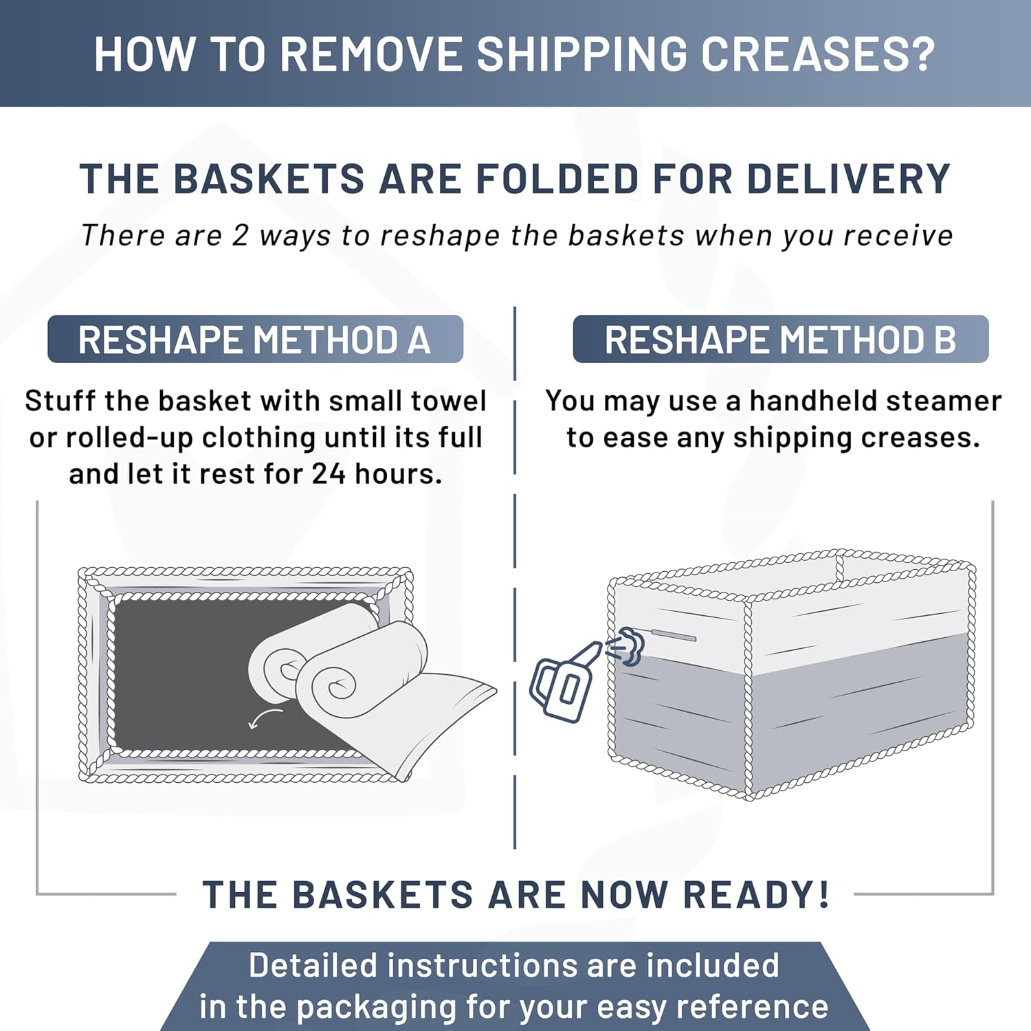 - Say Goodbye to Wrinkly Floppy Woven Baskets: No more dealing with permanently creased, flimsy storage basket, unlike others our rope basket stays firm and structured. With our unique folding method and quality rope, shaping is easy with our instructions!