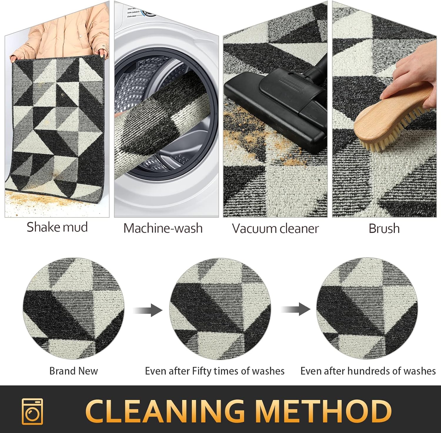 - EASY TO CLEAN: The unique rib fabric design removes dirt from shoes easily. When your doormat gets dirty, first shake it off outdoors or over your garbage bins, then sweep with a broom or vacuum regularly or use a garden hose to rinse the mat outdoors. For deeper clean: machine washable, use water under 86 (β) / 30 (β). Do not iron. Do not bleach. Do not expose it to the sun for a long time.