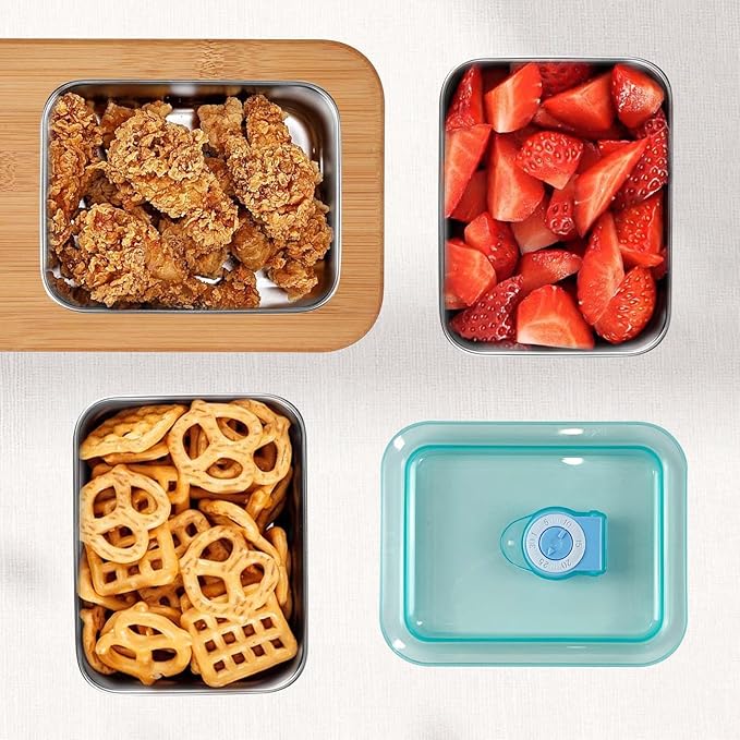- 【Food Storage】With these stainless steel snack containers, you can store food safely and conveniently without having to worry about spills or leaks. These food box makes it easy to prepare healthy meals, it’s ideal for fruits, vegetables, nuts, crackers and other snacks to maintain their freshness.