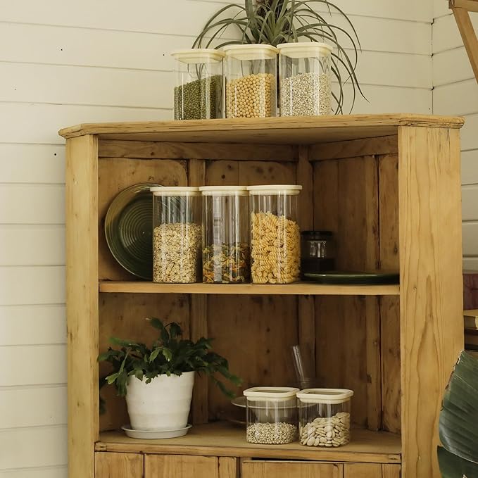 - SMART WAYS TO STORE YOUR FOOD: With the different sizes and shapes of our glass canisters, you will find the right container for every product. Thanks to the tight-fitting lids, your supplies stay fresh and full of aromas and flavor.