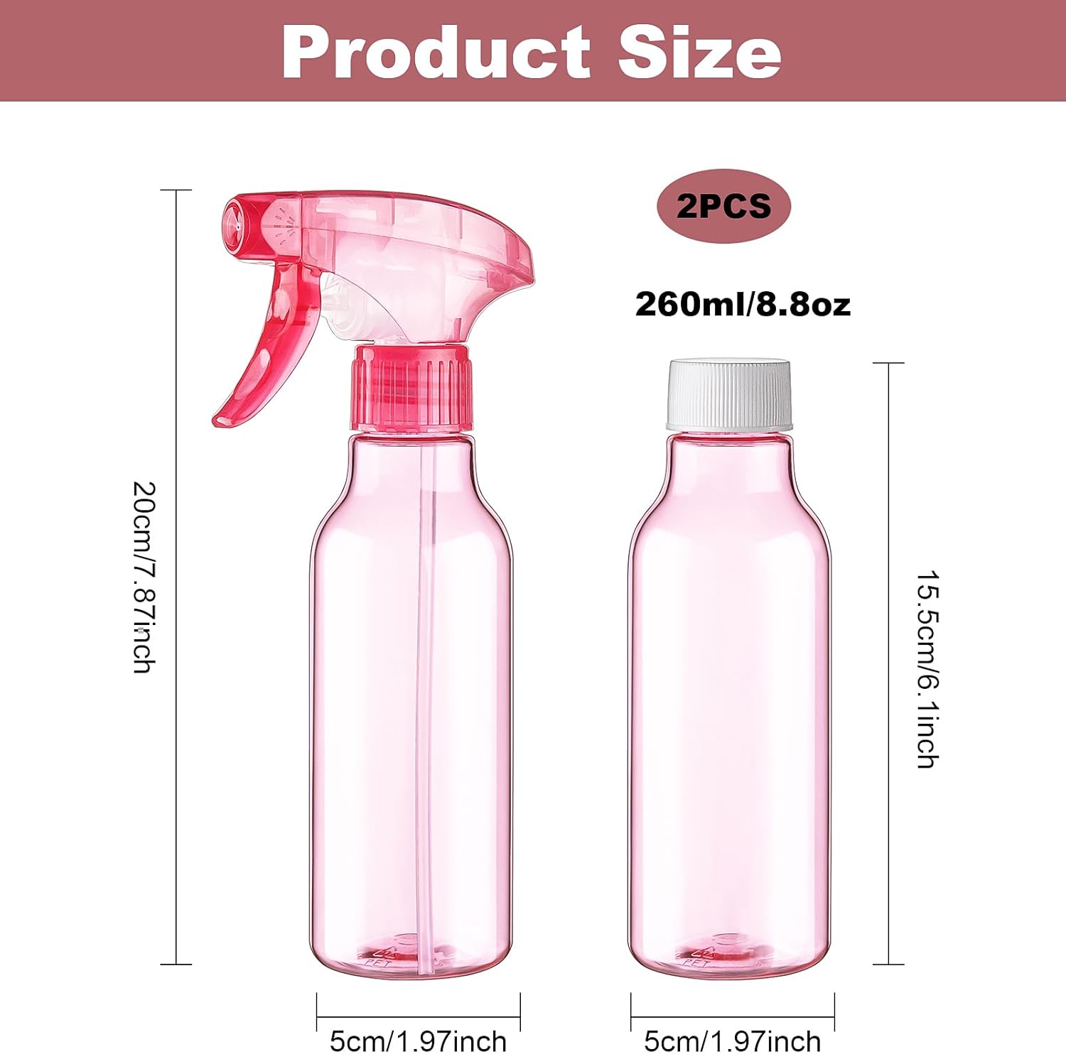 - Premium Quality Plastic Spray Bottles: Our 2 pack 8.8oz/260ml spray bottles are made from sturdy, high-quality plastic, ensuring long-lasting use. Including: 2 x Plastic Spray Bottles, 2 x Trigger Spray Nozzles, 2 x Screw Caps. Your satisfaction is always our top priority, we will do our best to meet your satisfaction.