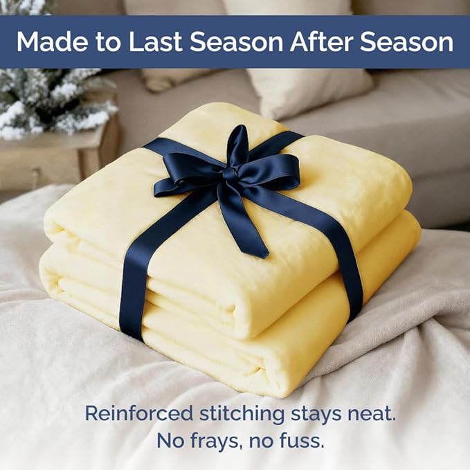 - DURABLE DOUBLE-STITCHED BLANKET DESIGN: Engineered for longevity, this blanket features a two-sided pile, wide 1-inch hem, and reinforced double needle stitching. Designed to withstand regular use and frequent washing, it maintains its shape and softness over time. Ideal for families, pets, and high-traffic homes