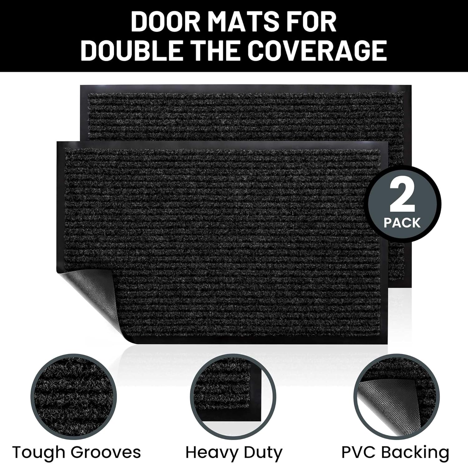 - Includes 2 BLACK X-Large Indoor Outdoor Floor Mats: Enjoy two amazing heavy duty high quality ribbed polyester door mats (Larger 48" x 36") that will be perfect welcome for the everyday home. Amazing value 2-Pack.
