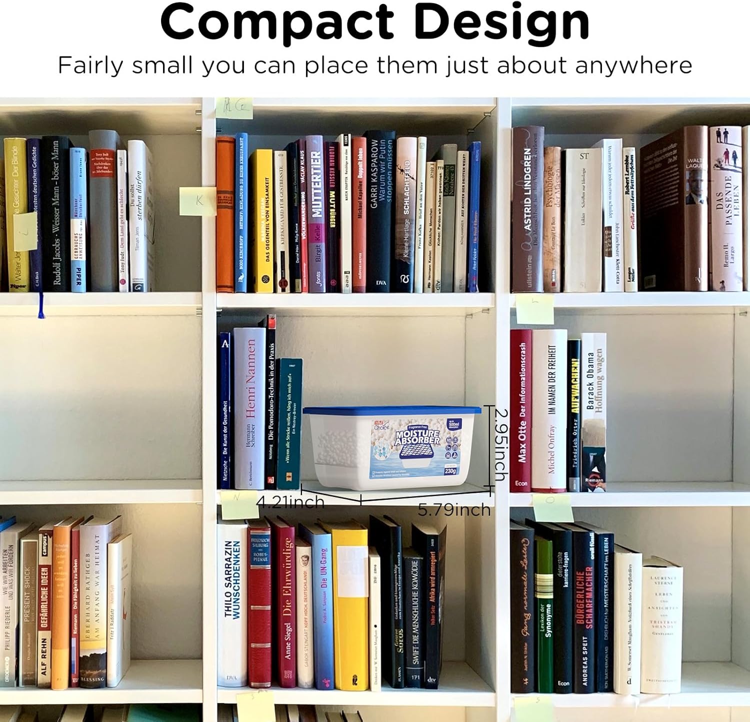 - Compact & Versatile Placement: With its small and portable design, the W&E Mart moisture absorber box works great for closets, bathrooms, basements, closets, laundry rooms, refrigerators, RVs, ships, etc.
