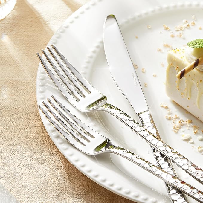 KINGSTONE 20 Piece Hammered Silverware Set, 18/10 Stainless Steel Flatware Set for 4, Cutlery Set for Home, Party, Wedding, Mirror Polished Dishwasher Safe