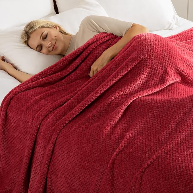 Exclusivo Mezcla Fleece Bed Blanket Twin Size, Super Soft and Warm Blankets for Couch, Sofa and Bed Waffle Textured, Cozy, Fuzzy and Lightweight (Deep Red, 60x80 inches)