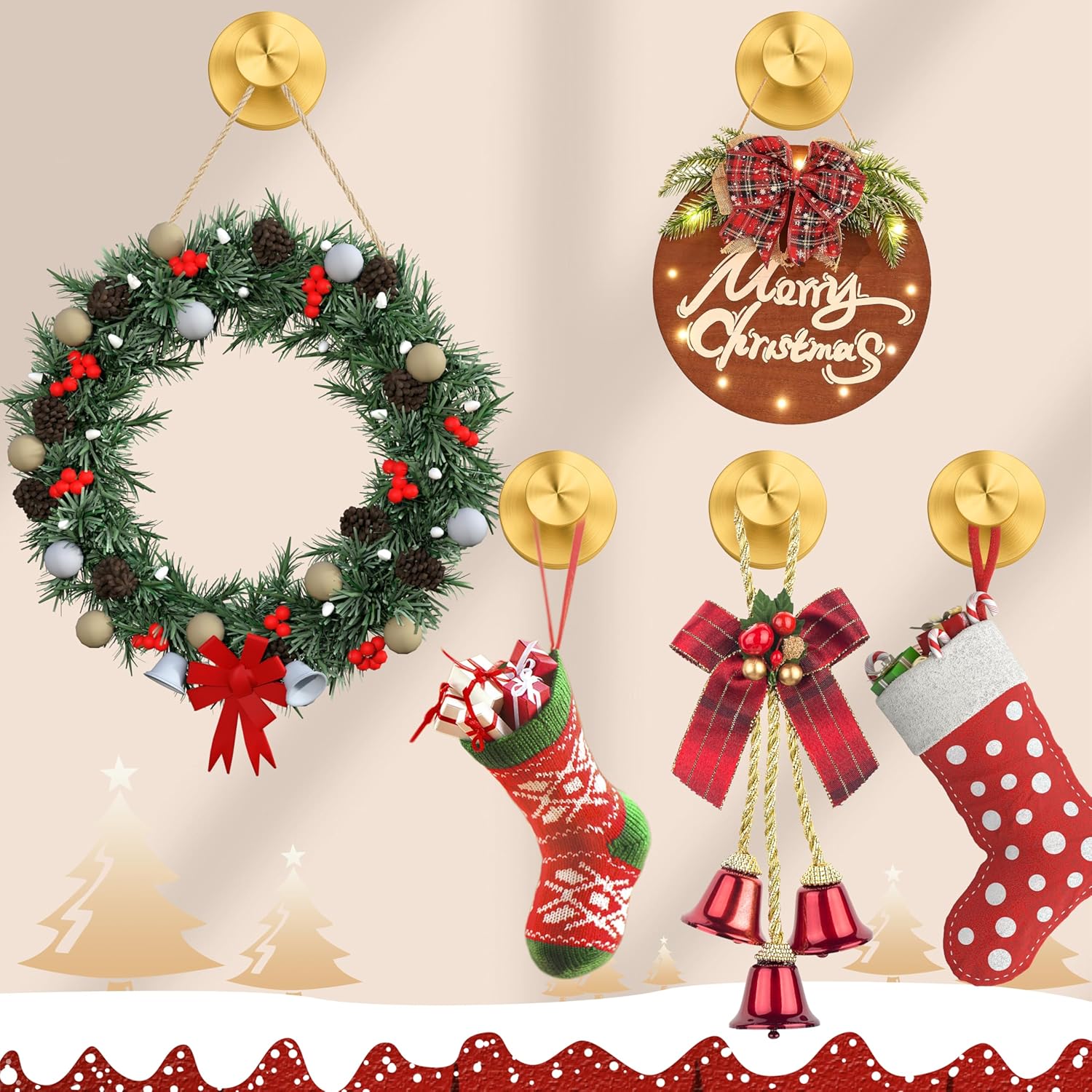 - 【Hangs Securely on 10+ Materials】The suction cup hooks are suitable for christmas decorations ,bathrooms,kitchens,windows, wreath hanger,heavy duty suction cups for glass.it can be fixed to fit tile, glass, mirror, marble, metal,acrylic,plastic,stainless steel and other smooth wall surfaces.,it can hang towels, loofahs, bathrobes,garland wreath and other items up to 15 lbs.