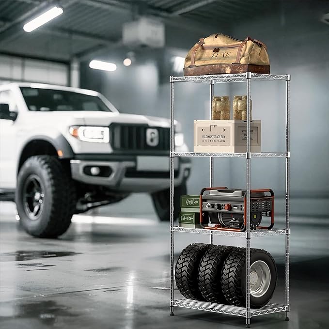 - Sturdy Chrome Steel Build: Made of rust-resistant chrome-plated steel, each shelf holds up to 250 lbs (total 1000 lbs). Great for kitchen tools, toiletries, or pantry supplies.