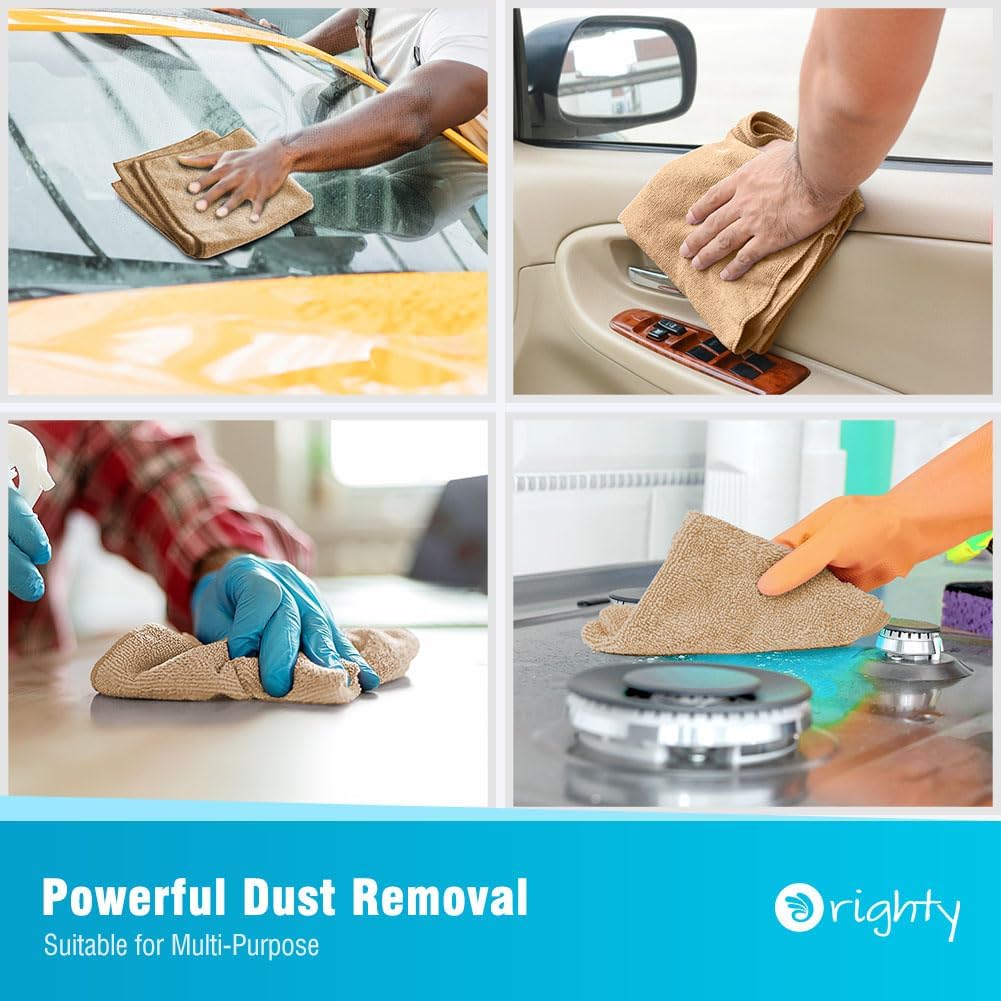 Orighty Microfiber Cleaning Cloth, 12 Pack Microfiber Towels for Cars, Highly Absorbent Car Cleaning Supplies, Lint Free Cloths Clean Rags for Car Care, House, Kitchen, 12x12 inch, Brown