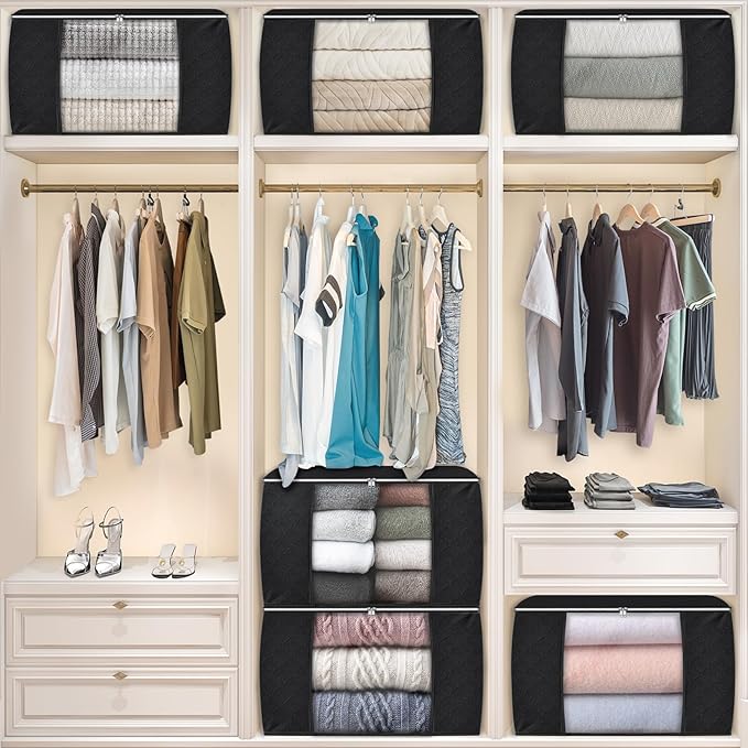 Fab totes 24 Gallons Clothes Storage, Foldable Thick Fabric Blanket Storage Bags, Containers for Organizing Bedroom, Closet, Clothing, Comforter, Organization with Handle (10 Pack,Black)