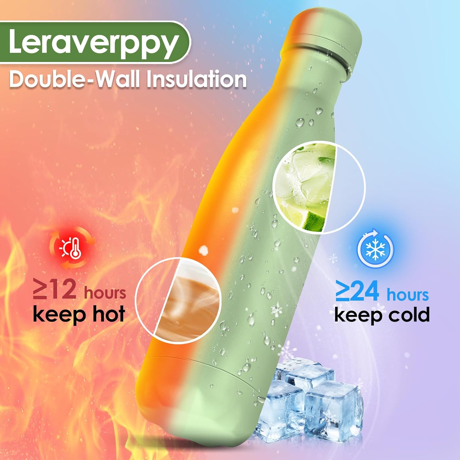 - 《Double Wall Vacuum Metal Water Bottle and Amazing Gift》This insulated water bottle is double walled and vacuum sealed,which keeping them ice cold for 24 hours and steaming hot for 12 hours.With healthy and reusable stainless steel,durable everyday water bottle is suitable for everyday use and also as an amazing gift for yourself or your partners friends family colleagues employees teachers etc.