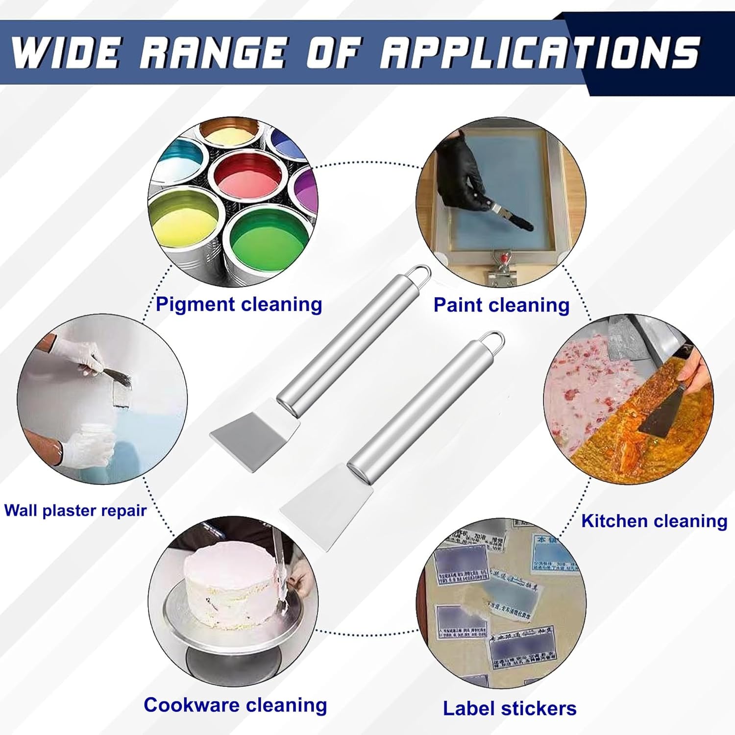 - 4. Versatile All-Purpose Cleaning Companion Use across multiple scenarios: Home & Renovation: Clear wallpaper, paint spills, or cured caulk. Commercial: Clean industrial machinery, food truck grease, or workshop surfaces. Outdoor: Grill Scraper / Griddle Scraper for Grill Residue Removal, scrape off stickers, gum, or moss from concrete.