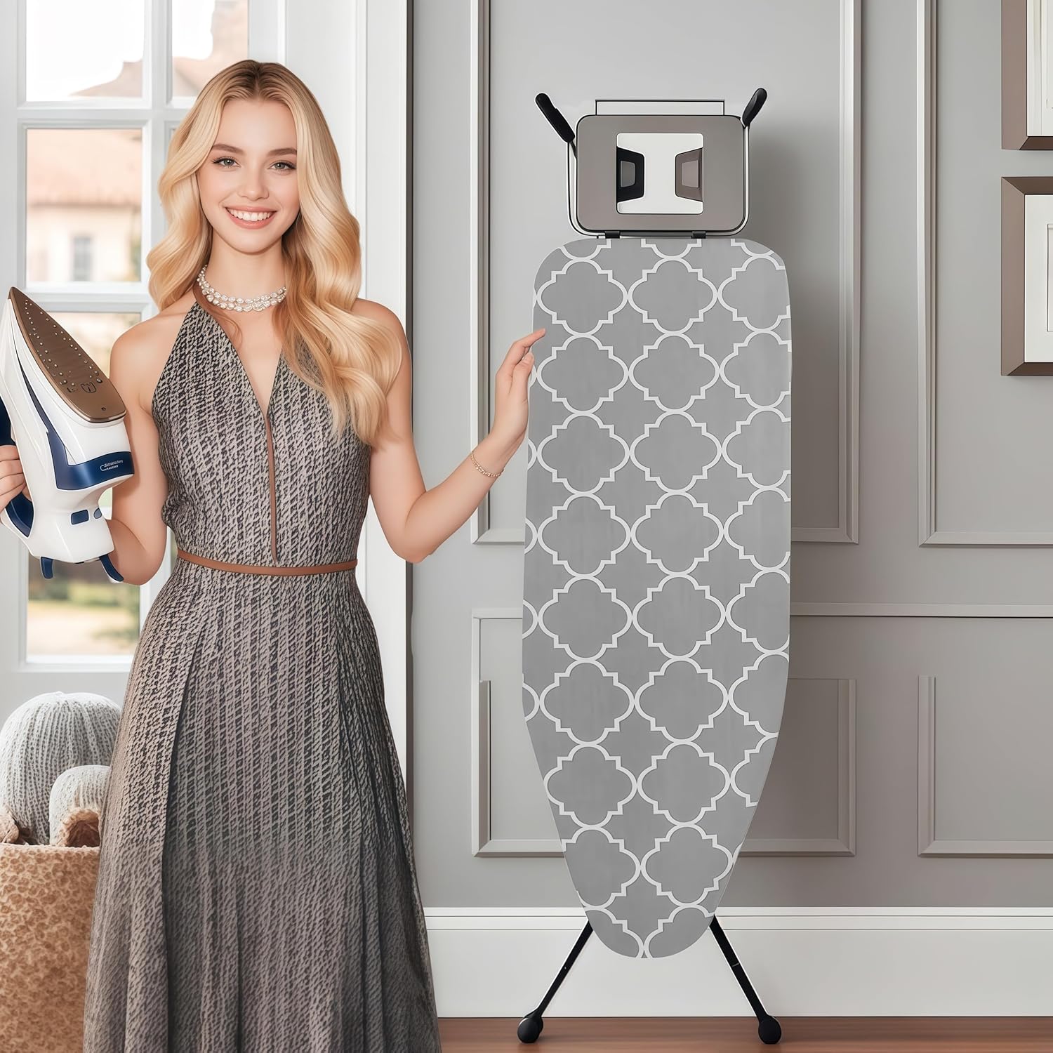 - 【Detachable and Washable Cover】:-The ironing board cover is designed for easy removal and washing. Simply detach it from the board and toss it in the washing machine for a quick and thorough clean. This feature helps maintain hygiene and prolongs the life of your cover.