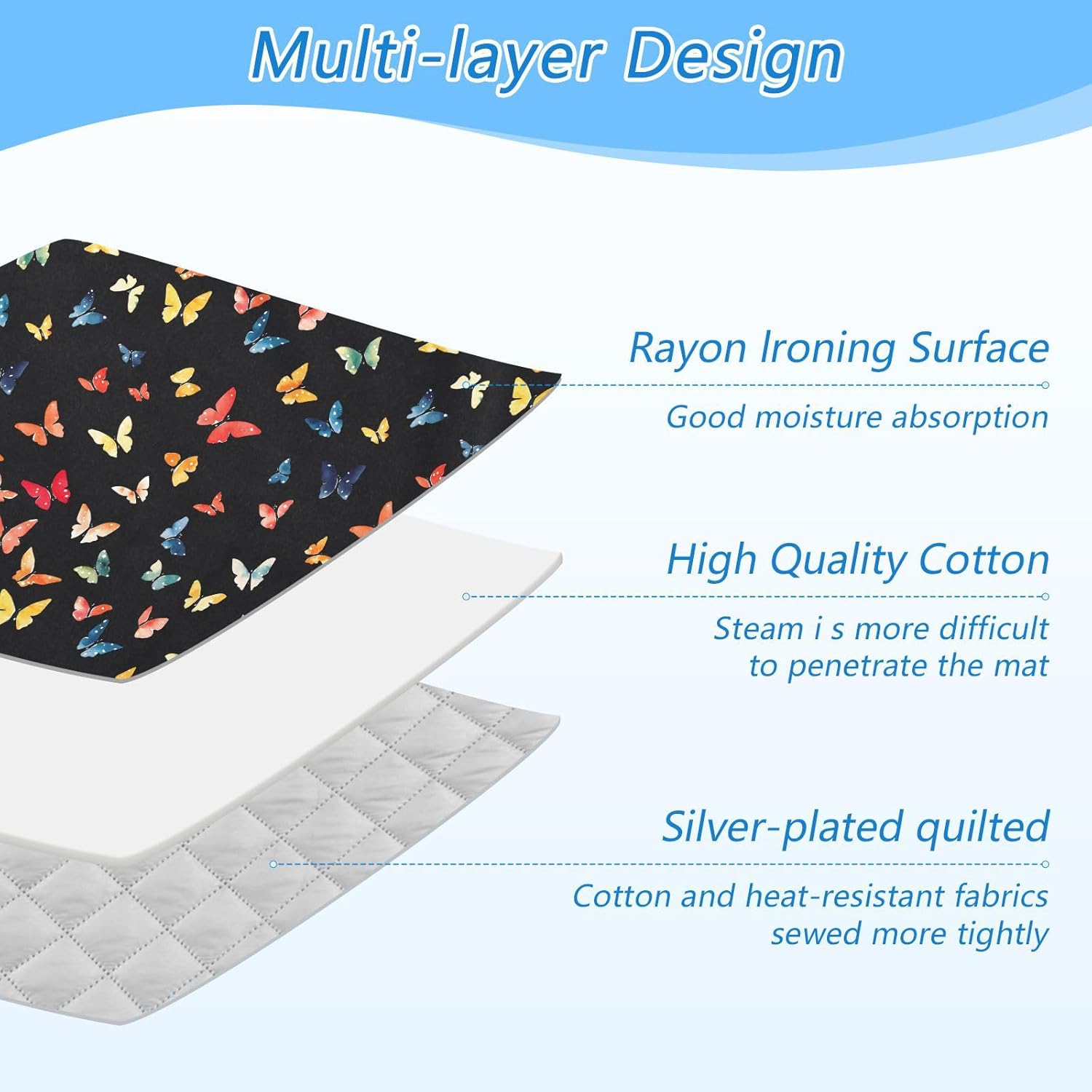 Colorful Butterfly Ironing Mat for Table top Portable Ironing Pad Blanket for Washer Dryer Countertop Travel