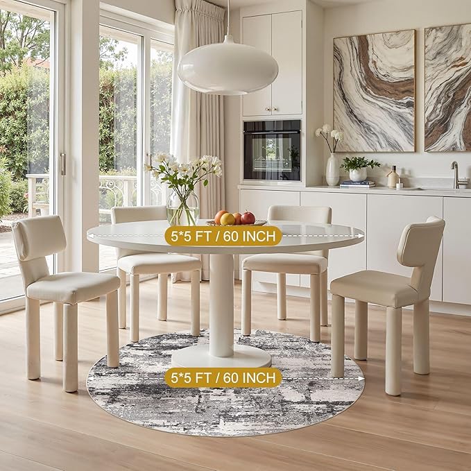 - Skin-friendly for Kids & Pets: Our round rugs 5ft is gentle on the skin and does not cause irritation or allergies. The area rug for living room is made from environmentally friendly materials, making it comfortable for kids and pets to walk, run, and play on.This area rugs ensures a safe and cozy environment for your loved ones.