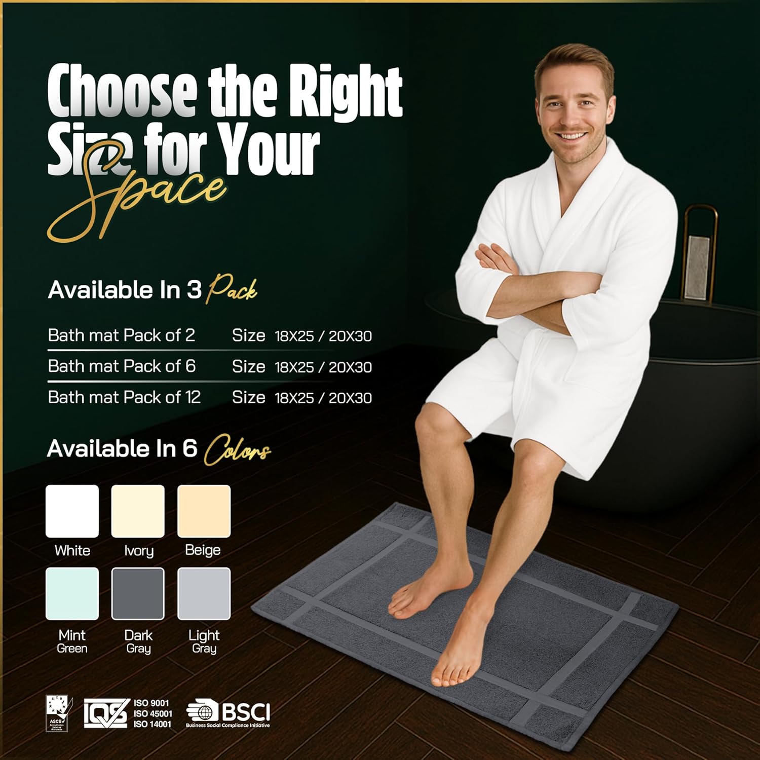 - Made from 100% cotton: Our bath mats for bathroom offer superior softness and absorbency. This 2-pack bath mat set includes 18X25" mats that function as a tub mat, quickly soaking up water and keeping your feet dry.