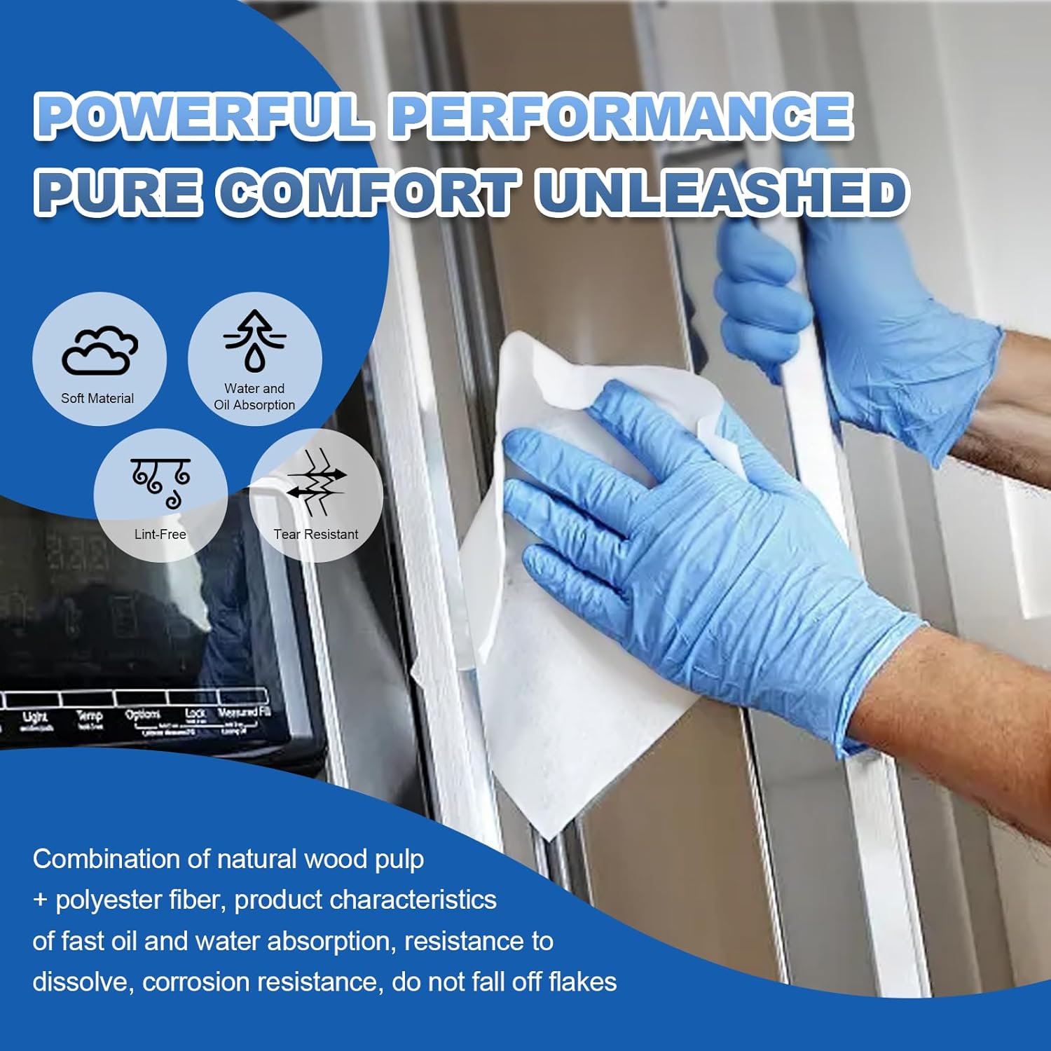 - Features:Nonwoven wipes have excellent absorbency, effectively absorbing water and oil, making them perfect for spill control. Ensures virtually streak-free cleaning with minimal lint or particles, ideal for precision cleaning of electronics and laboratory glassware.