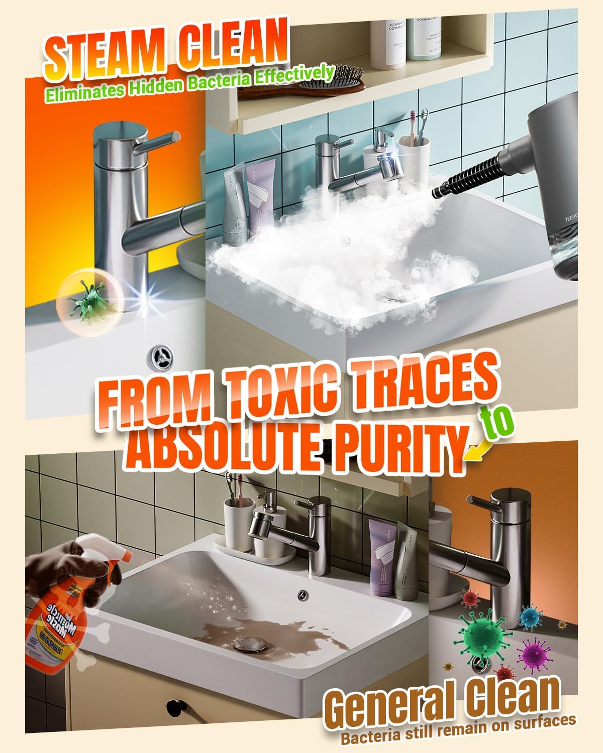 - Powerful & Continuous Steam: This handheld steamer for cleaning generates strong, pressurized steam to break down grease, grime, and sticky messes on contact without dripping. The steam cleaner for home tackles multi-surface messes like tile, kitchen counters, grout lines, and more with high-efficiency cleaning—with zero chemicals needed