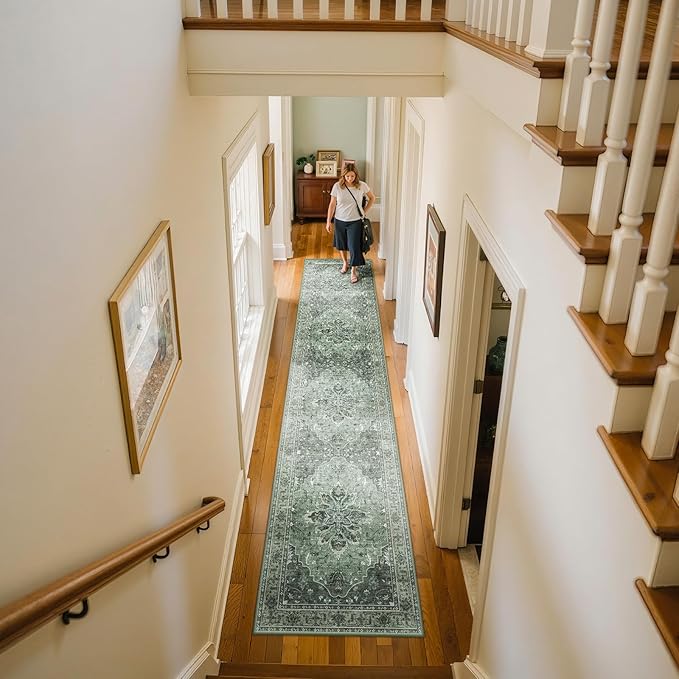 RELEANY Area Rugs 2'x10' Runner Rug Non Slip Washable for Kitchen Hallway Bedroom Beside Laundry Room Bathroom Rug, Floor Carpet, Dark Green Gray