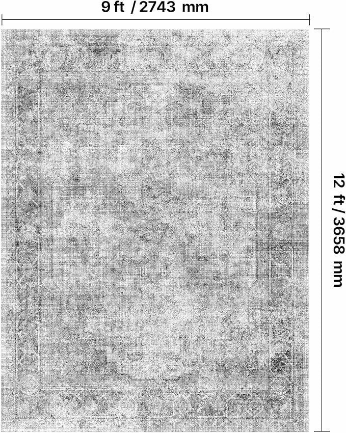 VEVOR 9 x 12 ft Area Rug Large Washable Boho Rug Non-Slip and Tear-Resistant Soft Carpet Pet & Child Friendly Bohemian Area Rugs Indoor Mat for Bedroom Living Room Kids Room Office Gray