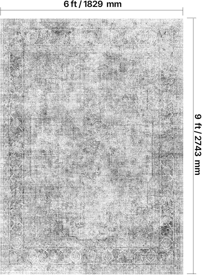 VEVOR 6 x 9 ft Area Rug Large Washable Boho Rug Non-Slip and Tear-Resistant Soft Carpet Pet & Child Friendly Bohemian Area Rugs Indoor Mat for Bedroom Living Room Kids Room Entryway Gray
