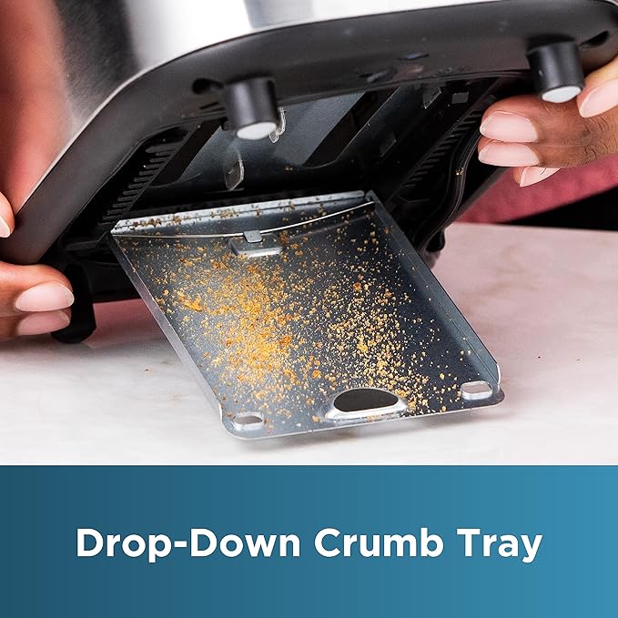 - Easy-Clean Drop-Down Crumb Tray: Keeps counters free of crumbs and ensures hassle-free cleanup.