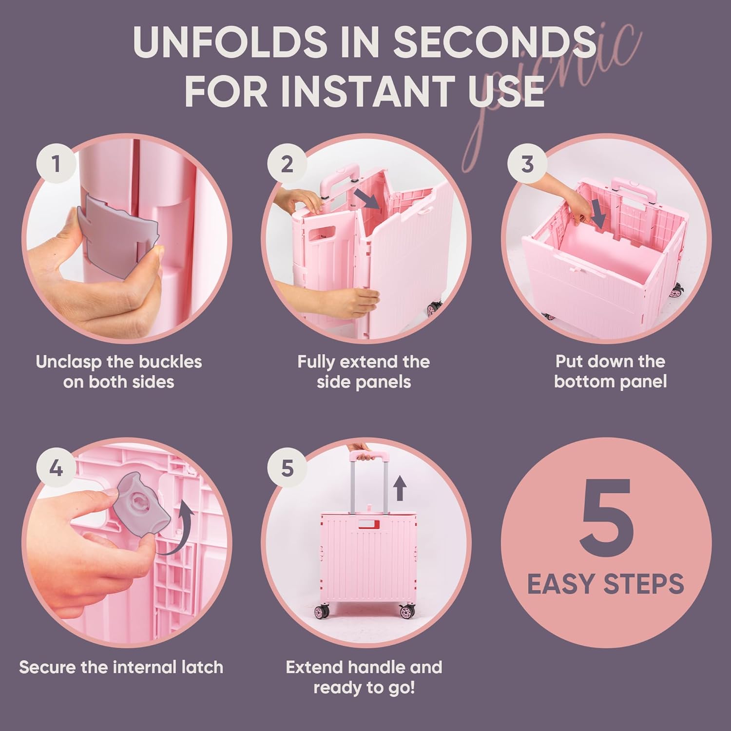 - 【Quick Setup & Multi-Purpose Use】Unfolds in just 3 seconds—no tools needed. Use this folding cart with wheels collapsible for shopping, travel, moving, office, or teaching needs. As a multifunctional utility cart on wheels, it’s convenient, versatile, and ready whenever you are.