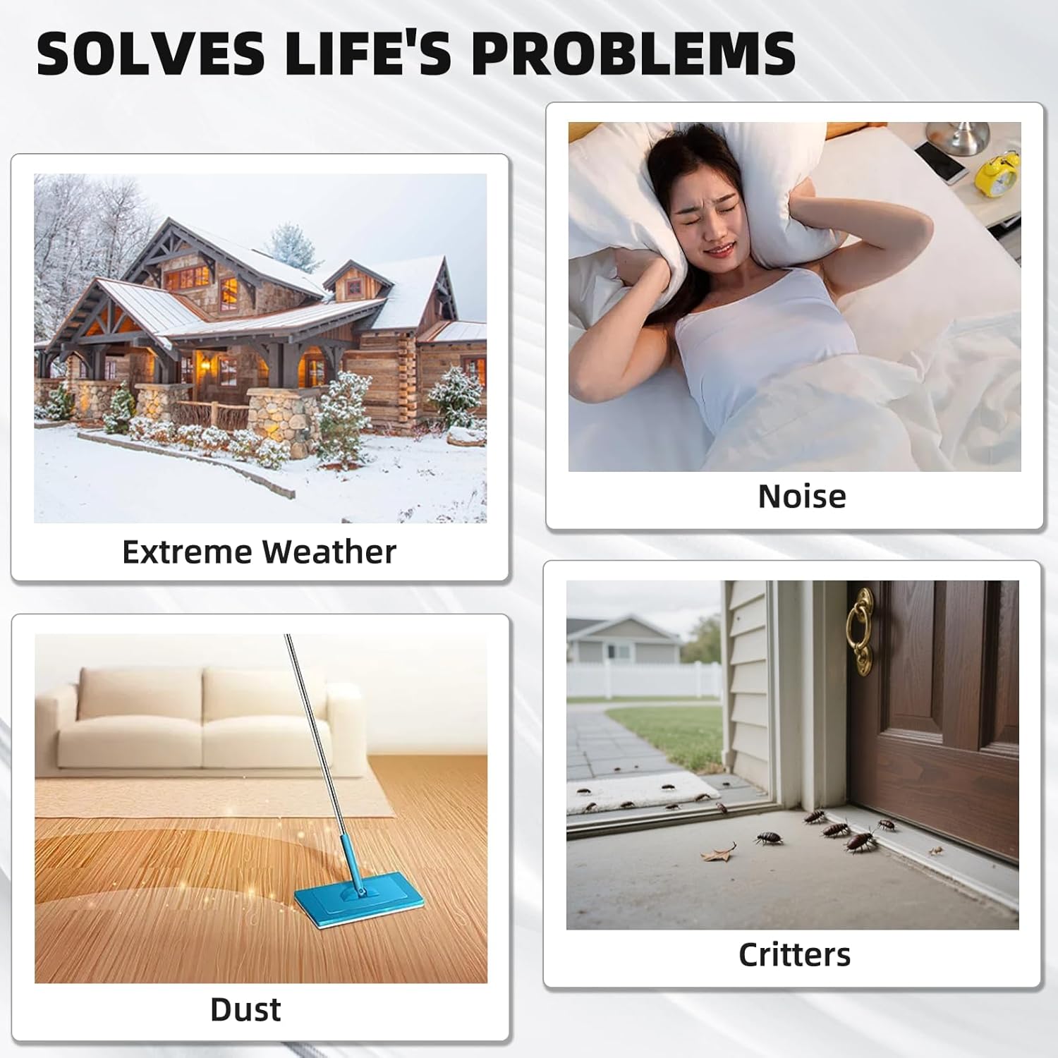 - Multi-Purpose Design: This window insulation is the perfect solution for sealing gaps around doors and windows with ease. Whether it’s winter or summer, our door weatherstripping acts as a reliable barrier to lock in hot or cold air—boosting heating and cooling efficiency while cutting down on energy bills. What’s more, it effectively blocks out noise, light, rain, dust, wind, leaves, snow, and odors, and even keeps unwanted pests from sneaking in.
