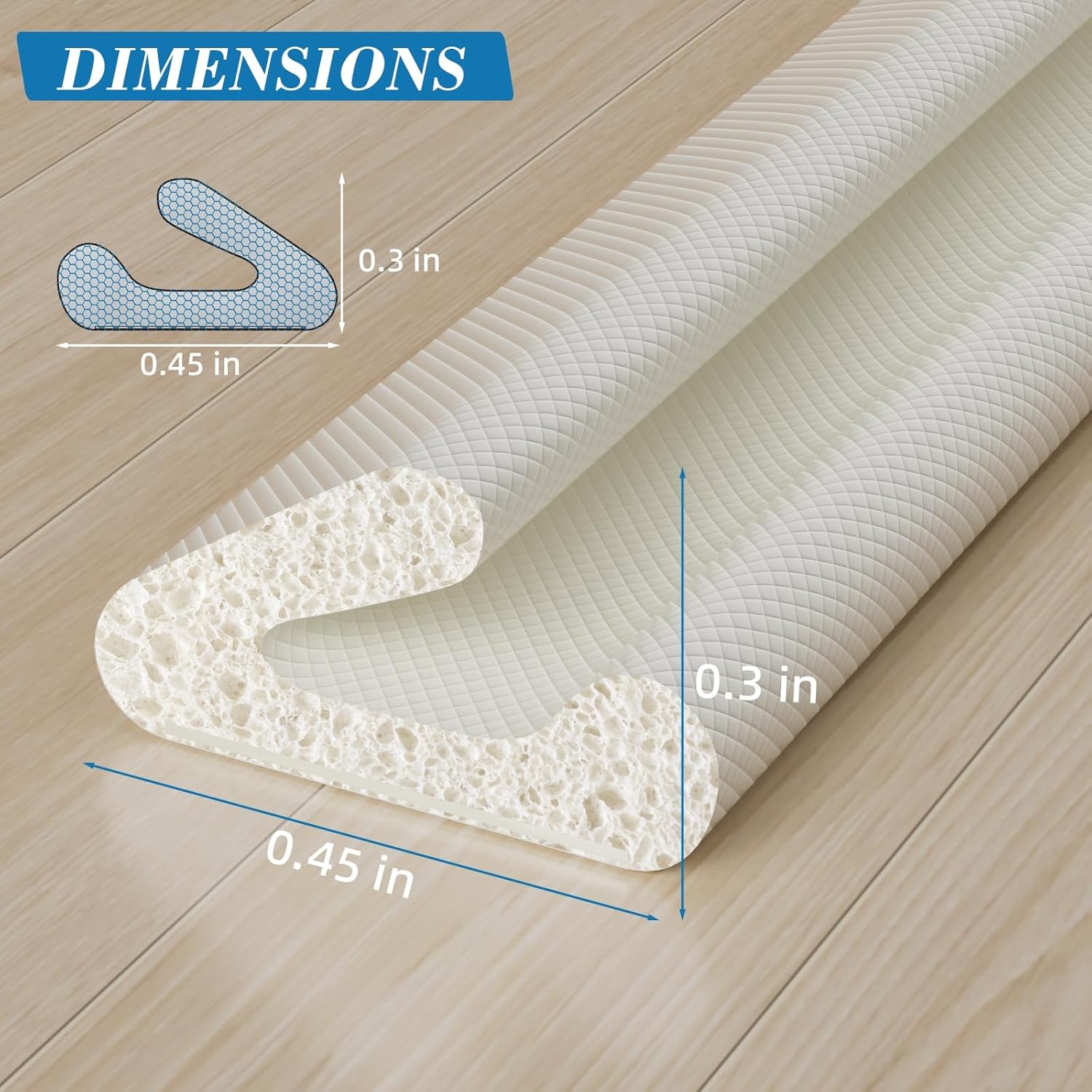 - V SHAPE WEATHER SEAL-The length is 33FEET, the width is 0.3INCH, suitable for 0.3inch~0.1inch gap, please measure the thickness before purchasing. The door sealing strip exhibits highly noticeable wrinkles after packaging due to the nature of the Foam used in its construction. The crease would not have any effect on your ability to seal.