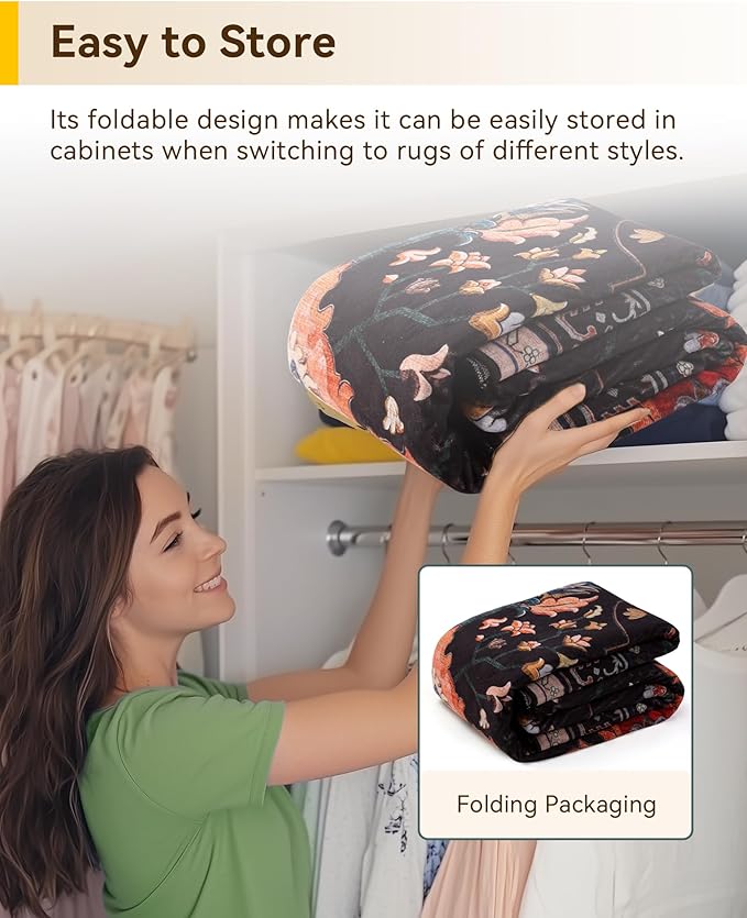 - Thin Design & Folding Packaging: this rugs with moderate thickness not only decor your home, soft on touch but also can be easily placed behind doors and under furniture. The sweeping robot can move around to clean the area rug. The thin design also makes it convenient for you to put the rugs into the washing machine for cleaning and easy to store.