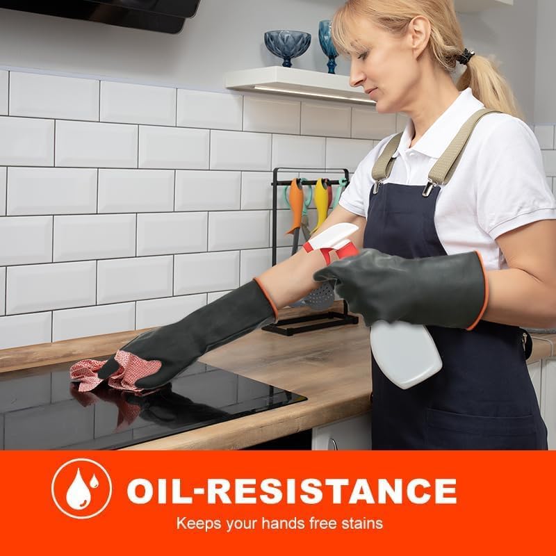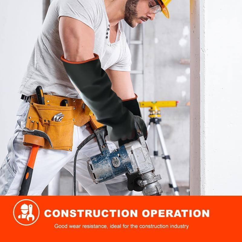 - Multiple Length Options:Available in 14", 18", and 22" lengths to suit various applications, providing tailored protection for forearms, elbows, and full arms., our oversized rubber gloves feature extended cuffs that shield your wrists and forearms from splashes, abrasives, and hazardous chemicals. Designed to accommodate various hand sizes, these gloves offer an exceptional fit while providing comfort and heat resistance for prolonged use.