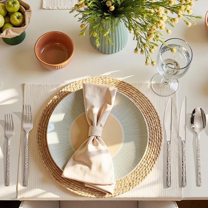 - Elegant Hammered Design: The hammered silverware set finish and trapezoid handles of flatware set for 8 not only offer a comfortable grip but also exude sophistication. Meticulously polished, it adds a touch of luxury to any table setting