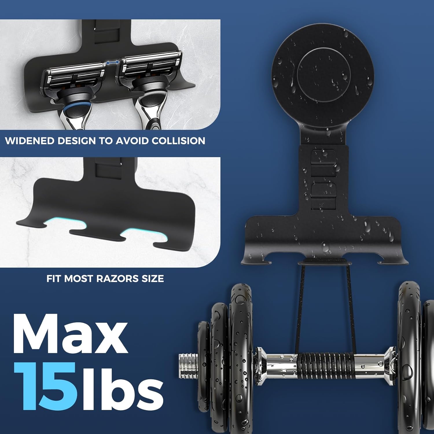 - 【DOUBLE HOOKS, ZERO INSTALL STRESS】Mount both shower razor holders for wall in seconds:Press→Twist→Lock.No tools/damage on tiles & glass