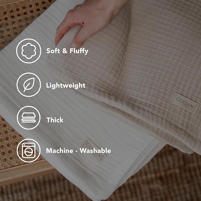 Goqan Muslin Blanket King Size 90x108 – 100% Turkish Cotton 4 Layer Boho Muslin Blanket for Adults, Four Season, Lightweight and Thin, Soft, Breathable for Bed, Couch - Beige