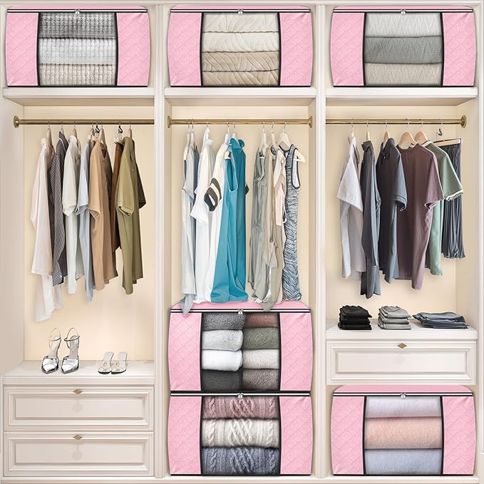Fab totes 24 Gallons Clothes Storage, Foldable Thick Fabric Blanket Storage Bags, Containers for Organizing Bedroom, Closet, Clothing, Comforter, Organization with Handle (4 Pack,Pink)
