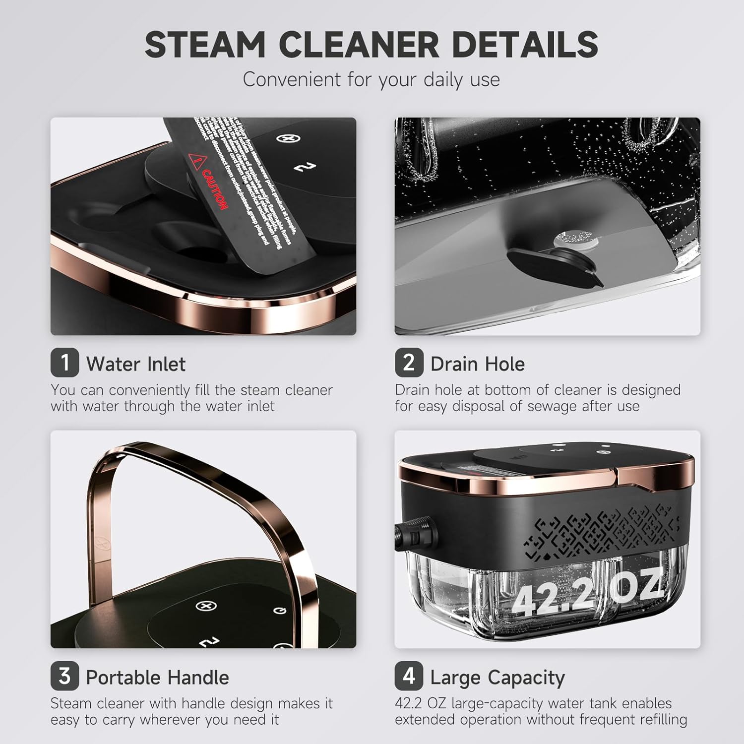 Steam Cleaner, Portable Steamer for Cleaning, Multipurpose Cleaning Steamer with Replacement Heads for Home, Dirt, Grease, Grout, Tile,Floor, Car Detailing