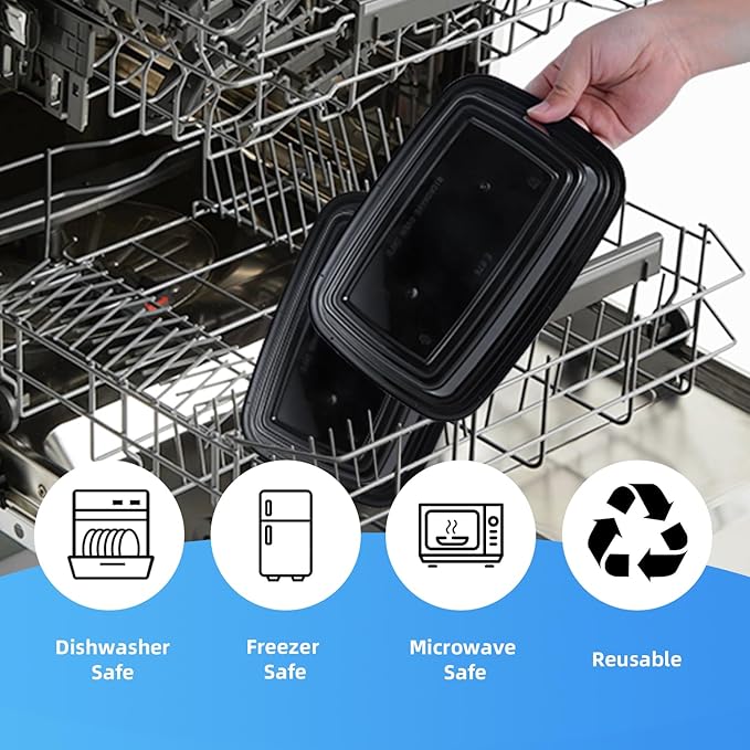 - 【Durable and Safe】Made from tough BPA-free plastic, these meal prep containers reusable are built to withstand daily use without cracking; Withstanding temperatures from -20°C to +120°C, they are ideal for both microwave and freezer use without the risk of harmful chemicals leaching into your food.They can also be easily cleaned for reuse with hand wash or on the top rack of the dishwasher.