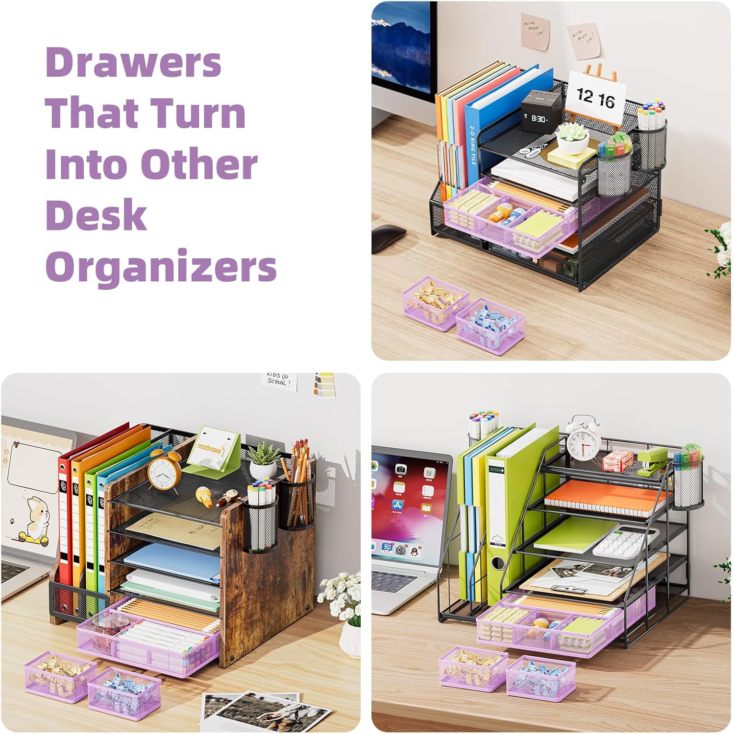 - ăStury and DurableăMade of sturdy black wire mesh structure with powder coated surface, smooth and corrosion-resistant. Non-slip feet can keep the product stable.Big DrawerïŒ12*8.3*2.2inchesïŒ2PC Small DrawersïŒ3.5*3*1.9inches