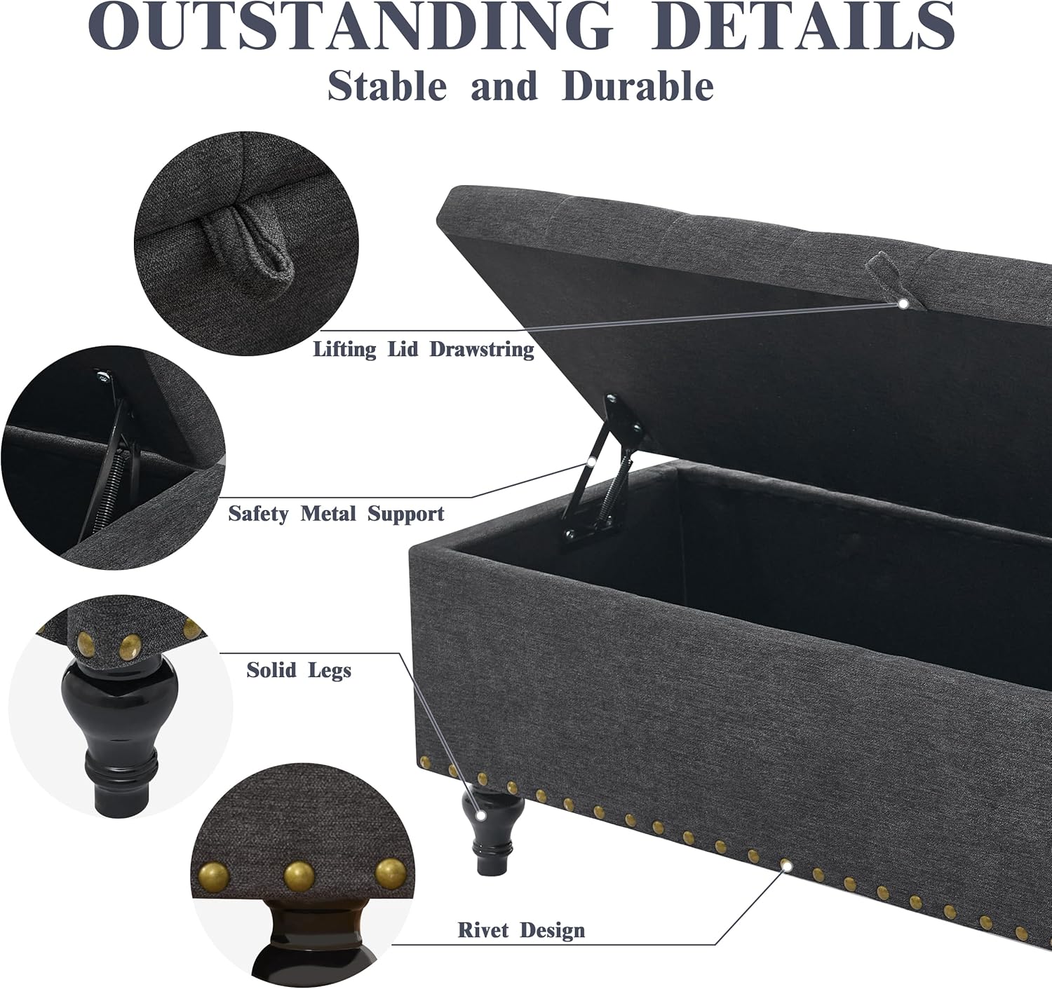 - Large Hidden Storage: Keep your space tidy with easy and quick access to stored items. The spacious interior of the large storage ottoman bench for bedroom provides ample room to organize blankets, clothes, shoes, helping you eliminate clutter