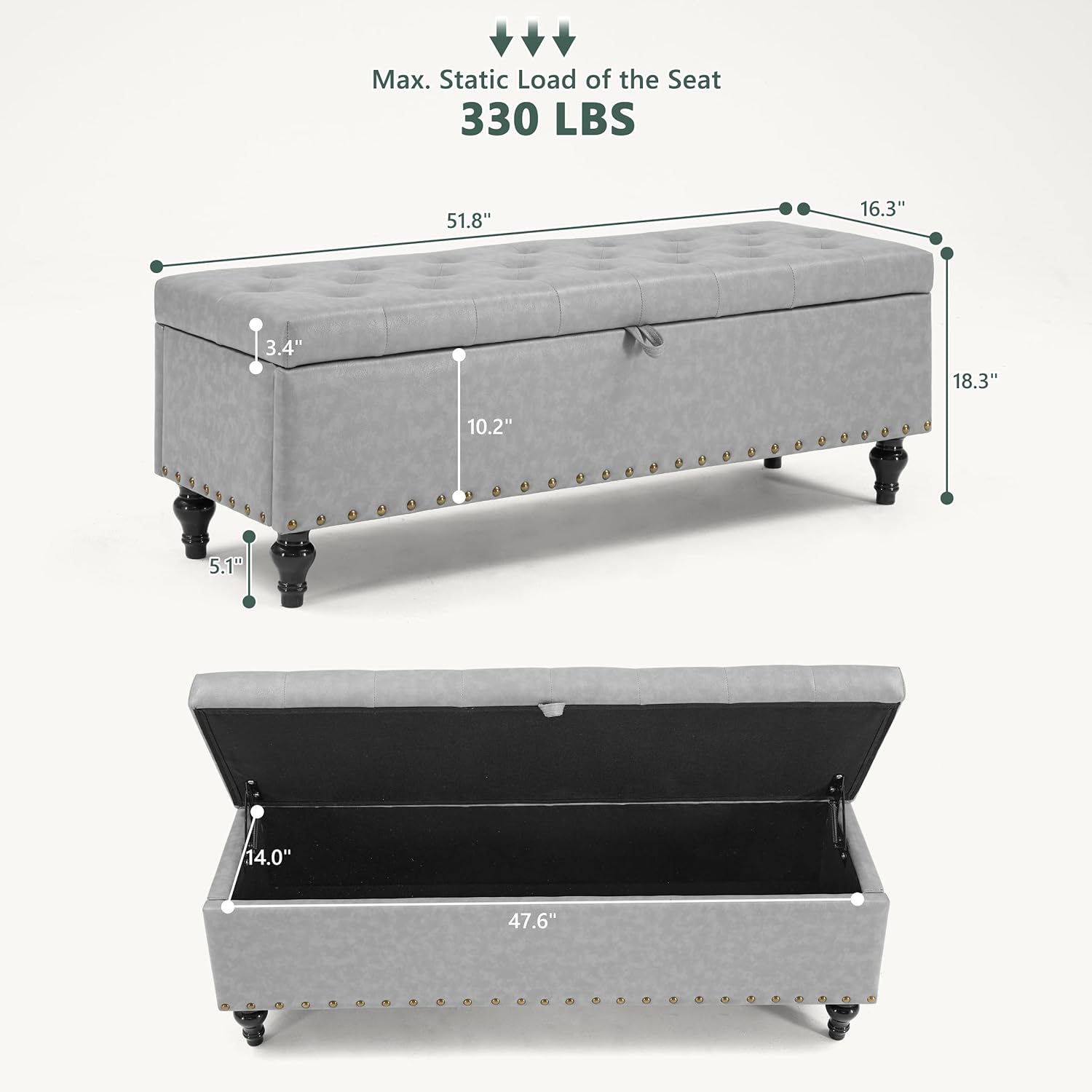 - Durable Wooden Construction: Built with a sturdy wooden frame, this storage bench for living room supports up to 330 lbs. It stays stable without wobbling or warping, offering durability and reliable support for everyday use