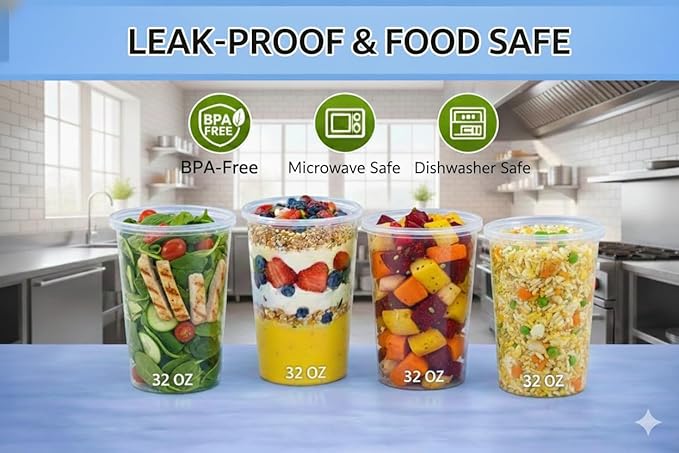 - GENEROUS CAPACITY: Each container holds 32oz fluid ounces (1 quart), ideal for soups, stews, salads, and other food items with secure-fitting lids