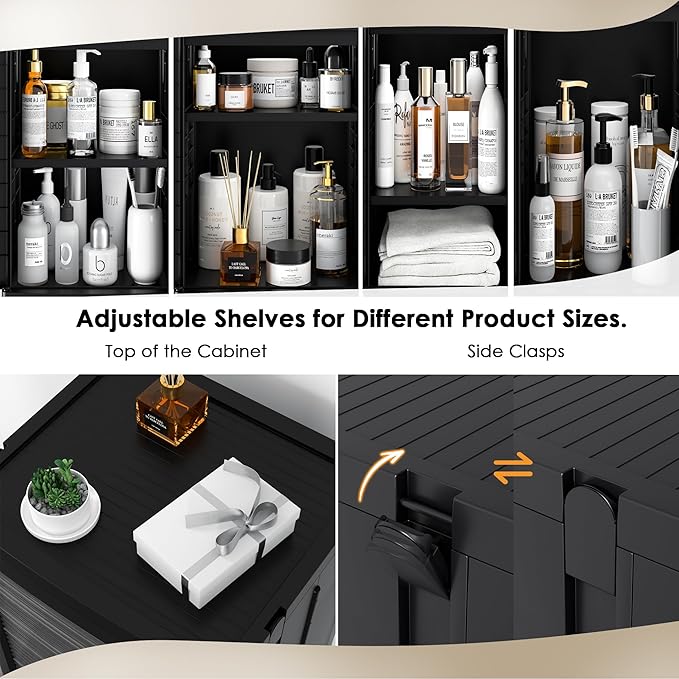 - Waterproof & Dustproof: This plastic storage cabinet features adhesive doors with tough closing, making it waterproof and protecting your items from getting wet in the bathroom. It also keeps dust out when used on the balcony or in the hallway, ensuring your belongings stay clean