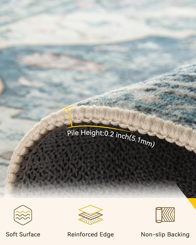- Soft Surface and Non-slip Backing: this area rug is made of low-pile soft material which feels great underfoot. With its low pile, the fibers are short and tightly packed together, creating a smooth and even surface. Your pets gonna love it. And the non-slip backing makes the rug stays in place.