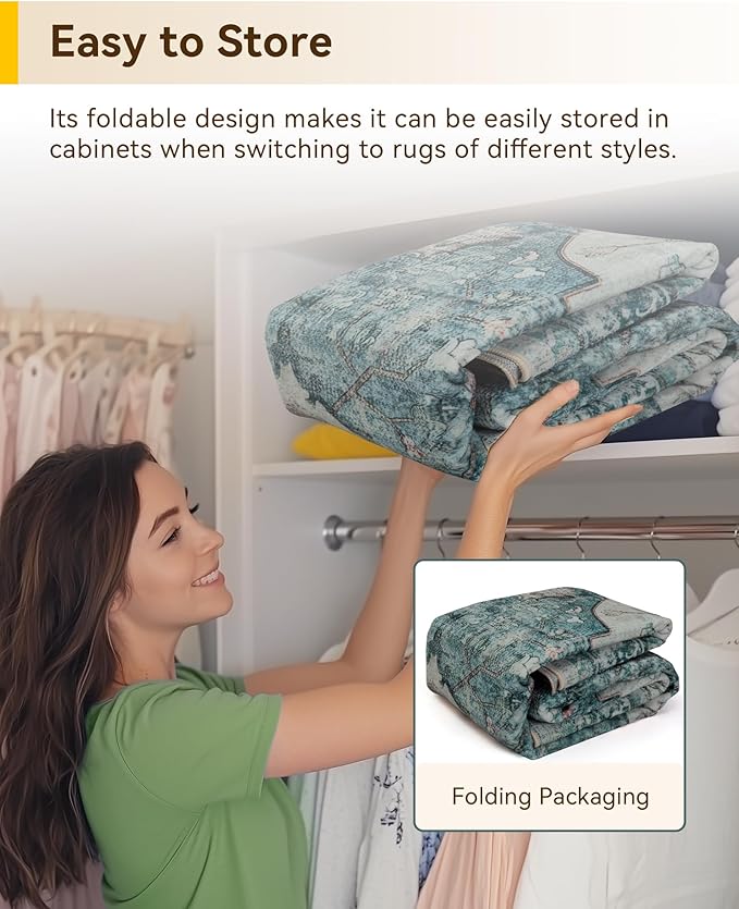 - Thin Design & Folding Packaging: this rugs with moderate thickness not only decor your home, soft on touch but also can be easily placed behind doors and under furniture. The sweeping robot can move around to clean the area rug. The thin design also makes it convenient for you to put the rugs into the washing machine for cleaning and easy to store.