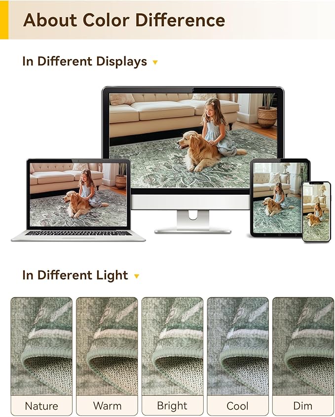 - About Crease: you may notice some folds on your rug upon receiving it. These are just from the way it was packaged during shipping. With regular use, the creases should naturally disappear within a few days. However, if you want to speed up the process, you can try folding the rug in the opposite direction or placing a heavy object on top of the creases to help flatten them out faster.